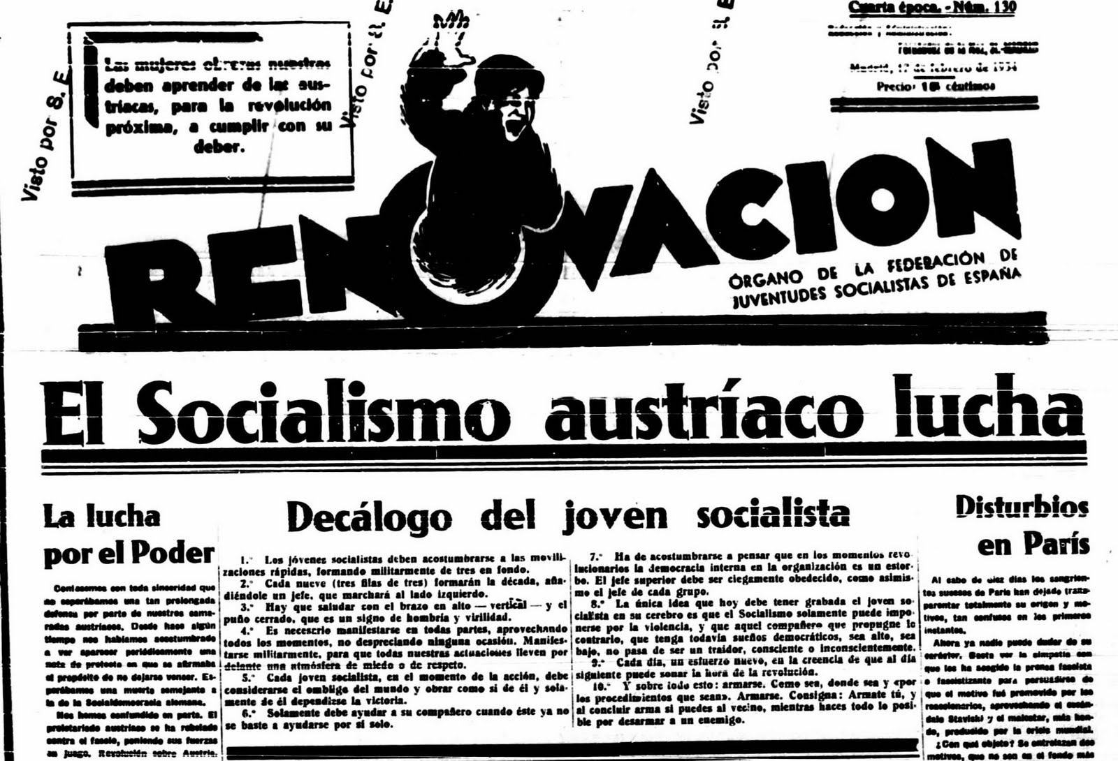 8. Impagable el decálogo del joven socialista» según el panfleto de las JSU, «Renovación», en 1934, bajo la dirección de Santiago Carrillo el genocida de civiles desarmados: pura concepción fascista violenta, totalitaria y militarista de la política: Se la pondrá dura a la niñatada artistilla pequeñoburguesa de clase media urbana, sin ningún vínculo con las masas proletarias, que adopta la pose revolucionaria porque está de moda ahora en su mercado.